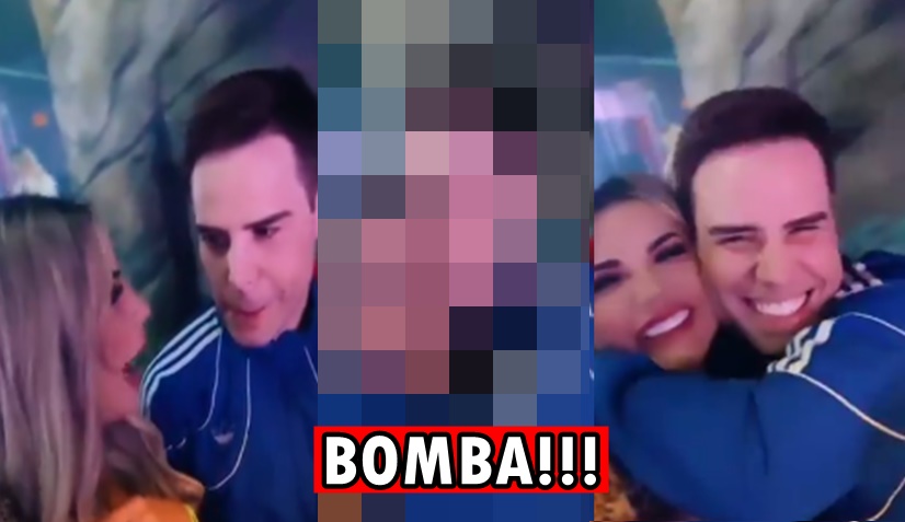 Nos vídeos eles se abraçam e trocam beijos. O apresentador agarra a advogada e a beija no rosto.