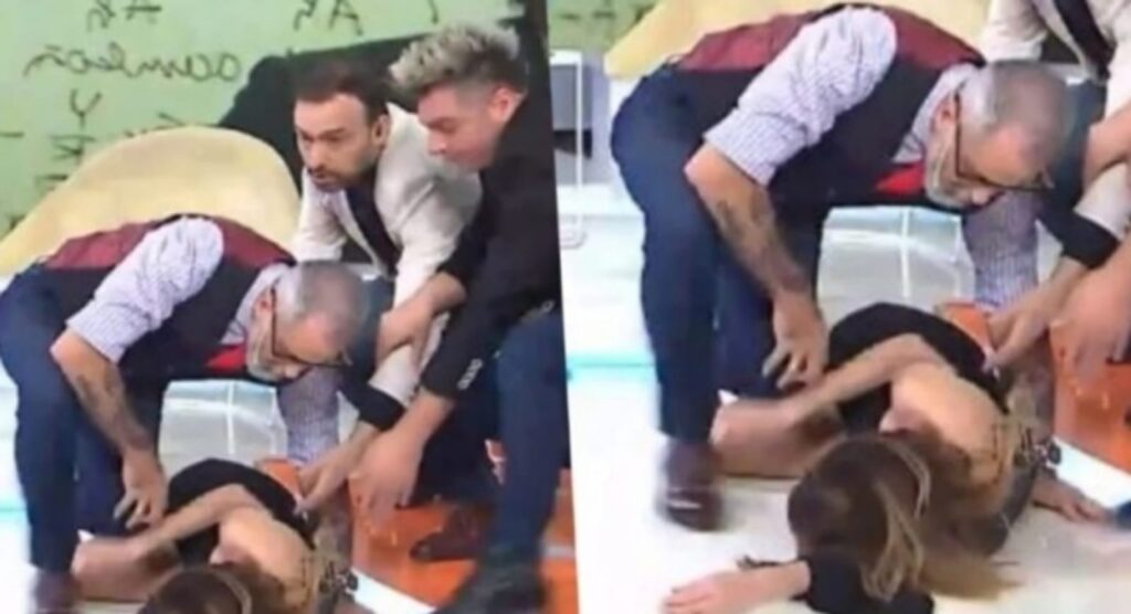 E de forma muito rápida o programa que estava sendo apresentado ao vivo é cortado do ar, e ainda sim conseguimos ouvir a plateia em choque e o desespero de todos os presentes, e foi solicitado um médico, o programa então cortou para os comerciais.